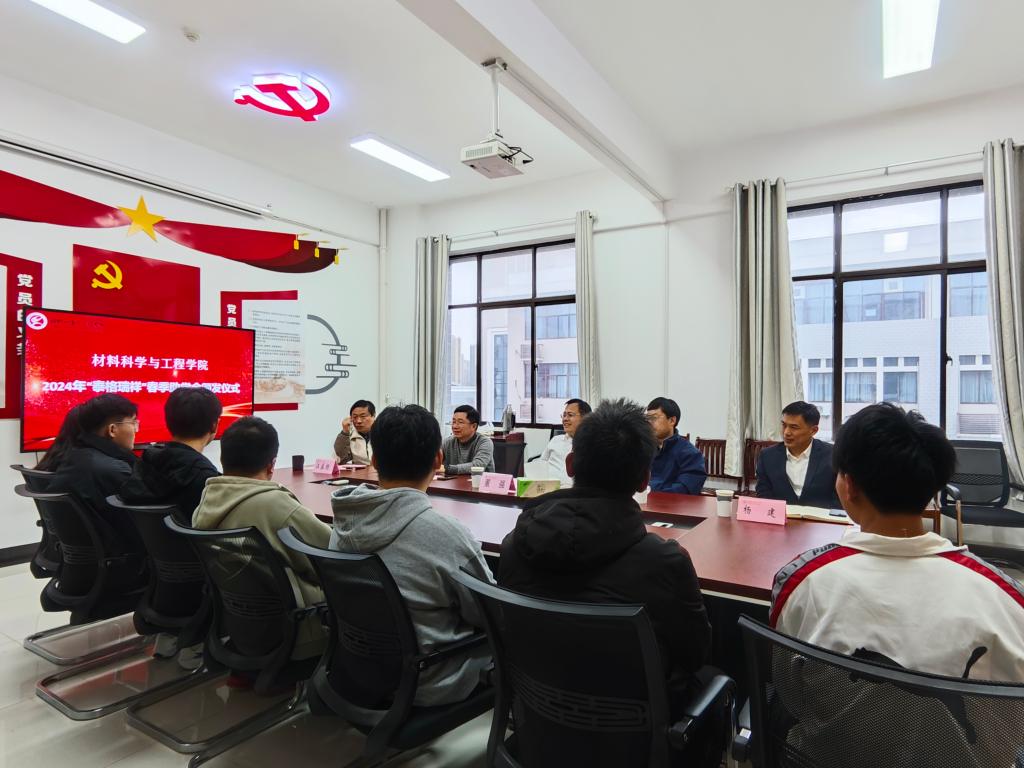 材料南楼405会议室暖意融融,2024年泰格瑞祥春季助学金颁发仪式在这里举行。2002届金相专业校友、天津泰格瑞祥仪器设备有限公司总经理董强,校友处处长孙晓斌,学院党委书记杨建,学院党委副书记、副院长汪盛颜,受助学生及相关年级辅导员参加仪式。仪式由汪盛颜主持。