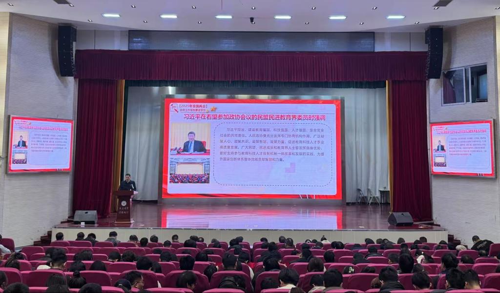 在秀山校区大学生活动中心会场召开了2025年第二次全院教职工大会,学院全体教职工参加了会议,会议由党委书记杨建主持。