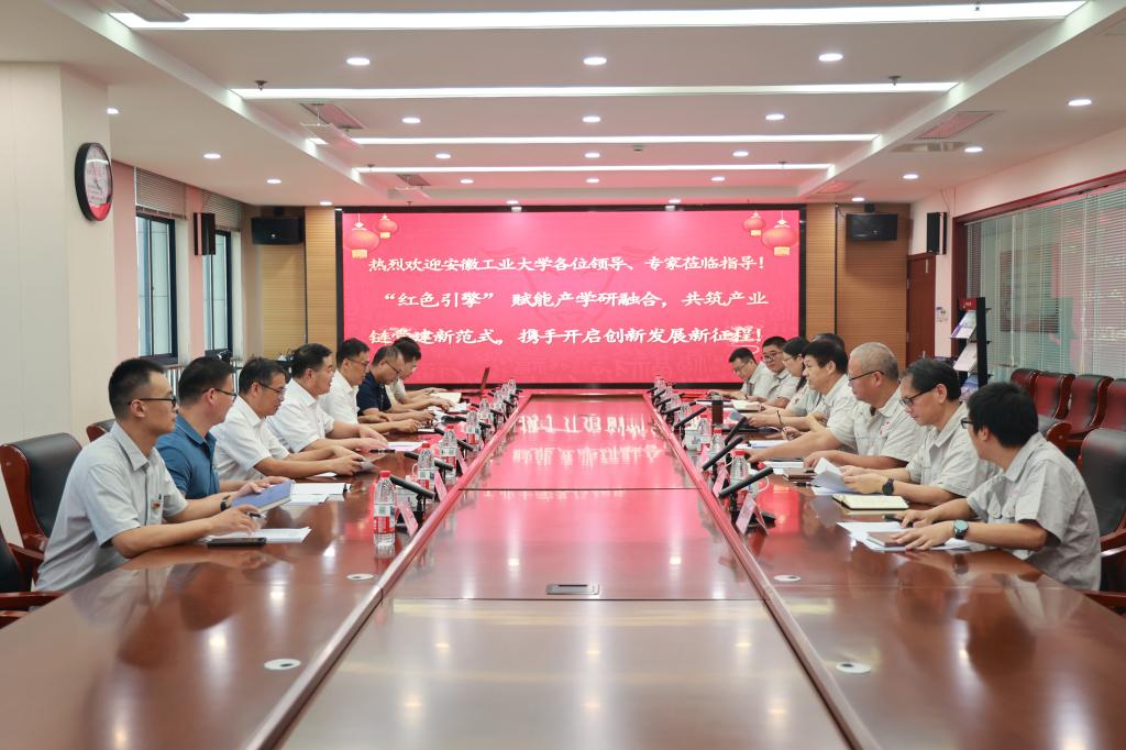 毛海波代表中钢天源对陆林一行表示热烈欢迎,指出要强化政治引领、发挥组织优势,推动资源共享与深度融合,共同打造“红色引擎·校企共建”的示范标杆。吴刚表示,希望与安徽工业大学共同打造“校企党建协同促发展”新样板,欢迎更多的优秀学子加盟中钢天源。