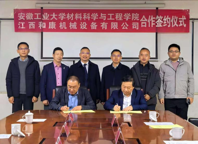 期间,柳东明、汪盛颜分别向江西和康机械设备有限公司颁授了“安徽工业大学大学生就业基地”牌匾,签署了《人才培训与就业基地合作协议书》。