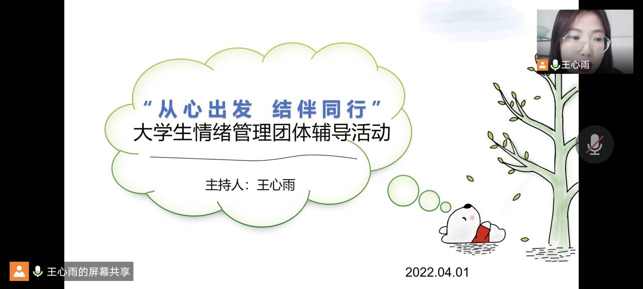 21级辅导员、心理工作站站长王心雨利用“腾讯会议”开展了“从心出发 结伴同行”大学生情绪管理团体辅导活动。