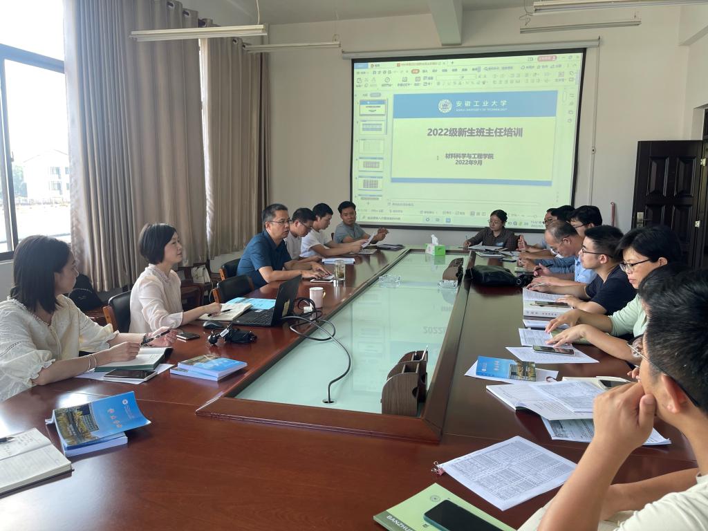 会上,赵颖虹详细介绍了2022级新生基本情况,带领大家学习了《安徽工业大学班主任管理条例》等文件制度,重点强调了班主任工作职责和要求,并对迎新工作进行了部署安排。接下来,两位辅导员做了简单的自我介绍,表示希望与各位新生班主任共同将2022级新生培养成“材”。院团委书记张佩佩就团学工作做了介绍,鼓励班主任引导学生积极参加团学活动,实现学生德智体美劳全面发展。