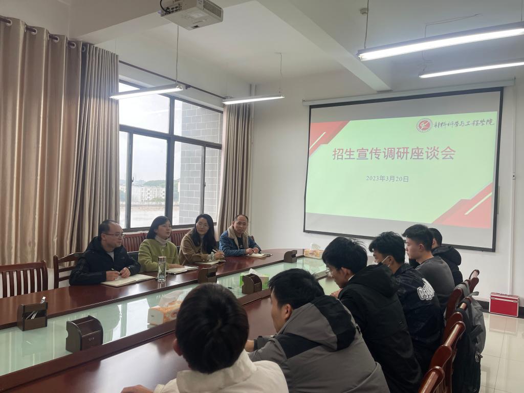 于秀山校区材料南楼410召开2023年本科生招生宣传调研座谈会。学院教学副院长夏爱林,党委副书记、副院长、纪委书记赵颖虹,各系教师代表、辅导员以及各年级学生代表参加了座谈。会议由赵颖虹主持。
