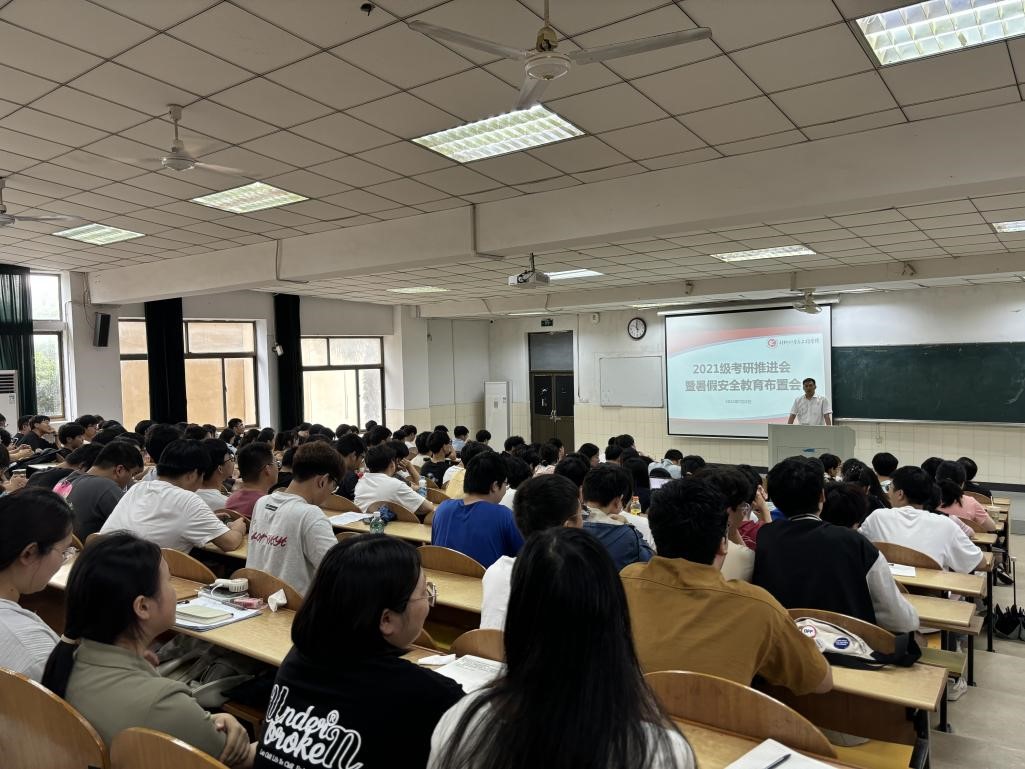 杨建结合自身求学经历与指导学生考研的经验,围绕考研是什么、为什么,深入分析了学历层次提升对学生将来发展的价值和意义。他寄语同学们通过自身努力实现心中梦想,让青春在党和人民最需要的地方绽放绚丽之花,同时要求同学们牢固树立“自己是安全第一责任人”的意识,严格遵守暑期校园管理规定,严格落实离校外出报备、零汇报工作,切实增强自身安全防范意识。