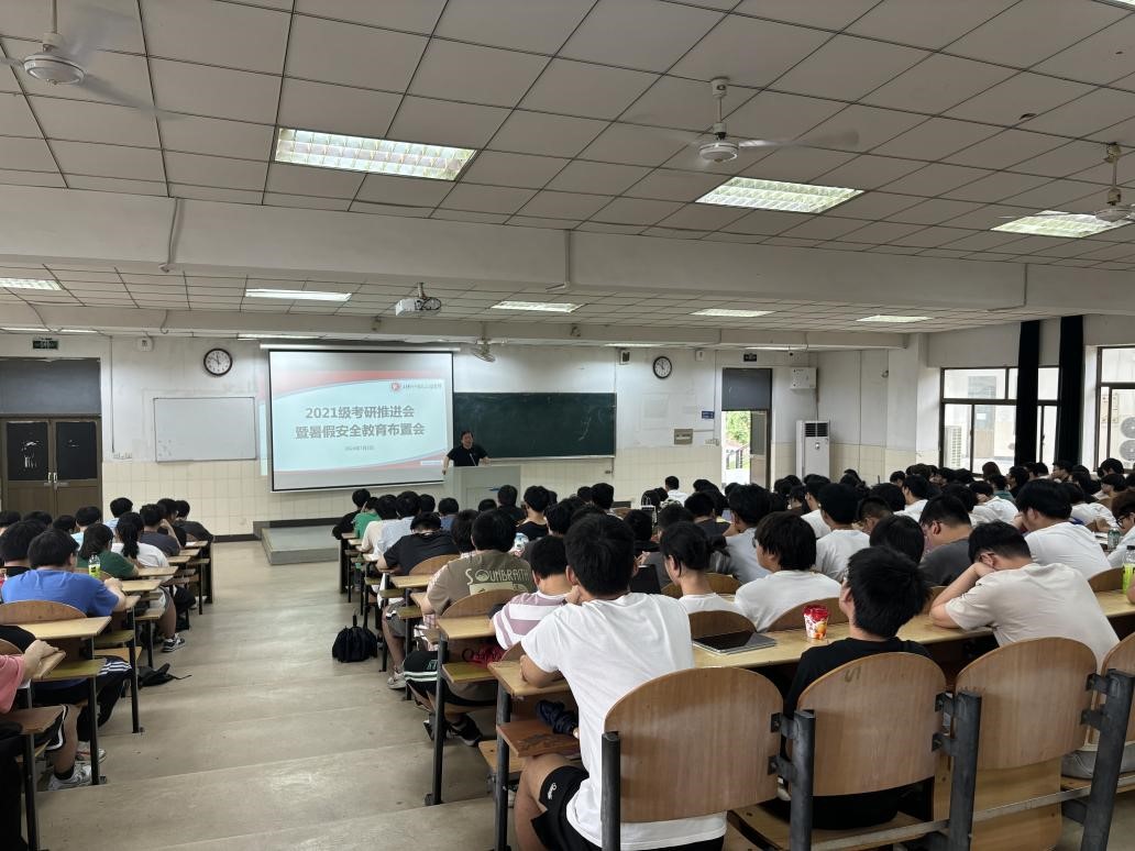 召开2025届学生考研推进会暨暑期留校学生安全教育会议,学院党委书记杨建,党委副书记、纪委书记、副院长汪盛颜和全体2025届学生参加会议。会议由2025届辅导员王心雨主持。
