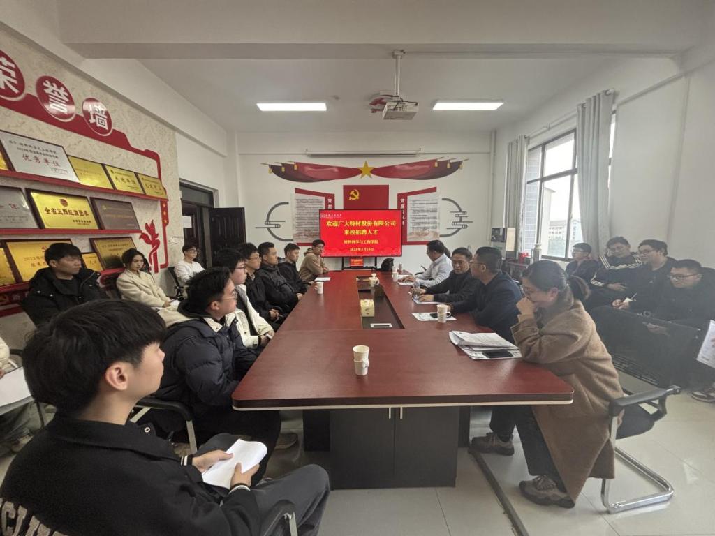 分别邀请中探集团马鞍山冠德公司、张家港广大特材股份有限公司、福耀集团等单位在材料南楼516举办就业创业讲座暨学院化、专业化专场招聘宣讲会。院长柳东明,党委副书记、纪委书记、副院长汪盛颜,毕业班辅导员、2025届求职毕业生参与活动。
