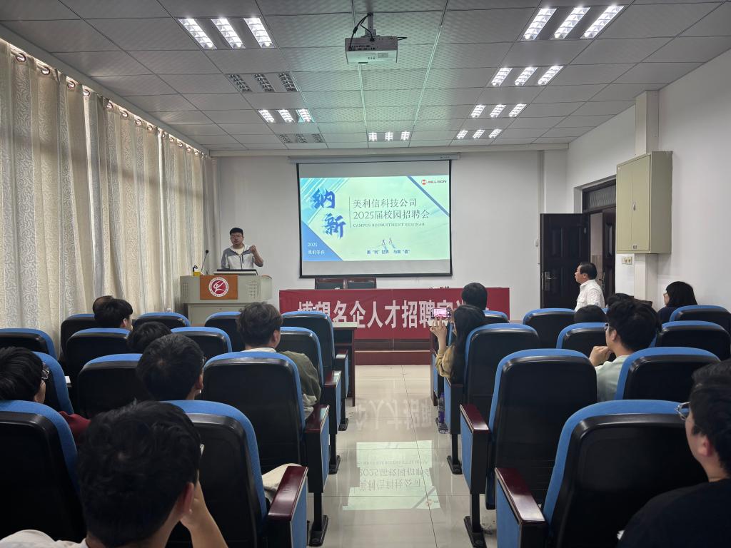 此次招聘会吸引了马鞍山市博望区的顺博合金安徽有限公司、安徽美利信智能科技有限公司、安徽元久机械制造科技有限公司、安徽三锐新能源汽车部件有限公司等四家优质企业前来招聘。各企业首先在材料南楼516 进行招聘宣讲。宣讲过程中,各企业人事部部长通过展示精心制作的企业宣传资料,向学生们生动展示了企业的规模、文化和发展前景、工资福利等,让同学们对企业有了更直观的了解。