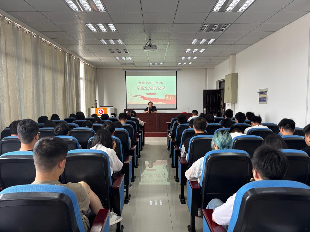 汪盛颜首先为毕业生党员讲授专题党课,他带领大家回顾党的百年奋斗历程,重温了共产党人的初心和使命。并向全体毕业生党员提出了四点要求:遵规守纪,充分发挥党员学生模范带头作用,遵守校纪校规,文明平安离校;践诺守信,积极配合做好毕业生离校前工作,积极填报离校清单,毕业后要诚实守信;筑牢安全,以身作则,注意交通安全、宿舍安全,防范网络诈骗,切实提高安全防范意识;勤学苦练,在新的岗位中继续发挥“真材实料”精神,脚踏实地走好人生路,为母校增光添彩。