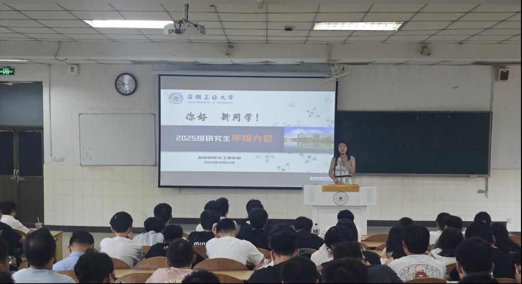 在秀山校区东阶101召开2025级研究生新生年级会。会议由学院研究生辅导员主持,2025级全体硕博研究生共两百余人参加了会议。