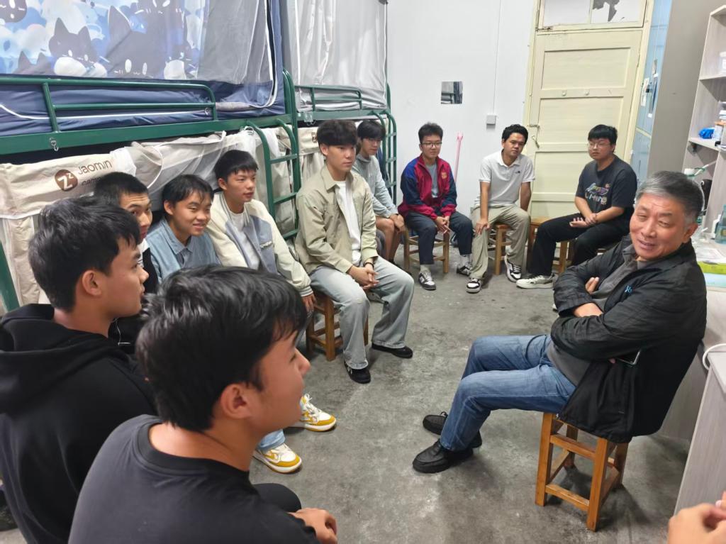 走进新生宿舍,洪永昌、郭道江两位老教师便与同学们亲切交谈,详细询问大家的住宿环境、饮食适应情况及开学以来的学习状态,瞬间拉近了与新生的距离。交流中,洪永昌以“焊接改变中国”为切入点,结合我国高铁飞驰、航母远航、航空航天事业突破等重大成就,向新生们系统介绍了焊接技术在国之重器研发与国家基础设施建设中的关键作用。他特别强调,要打破对焊接专业的固有印象,鼓励新生们学好专业知识,在以中国式现代化推进中华民族伟大复兴的伟大征程中,主动扛起材料人的使命担当,贡献青春力量。